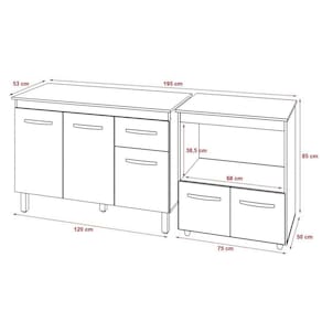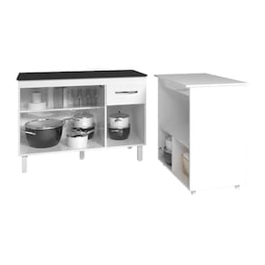 Balcão Armário Gabinete Aline 118 Cm Branco Com Tampo Preto E Balcão Amanda Para Forno E Microondas Branco Este kit une funcionalidade e design para transformar sua cozinha! Conta com o balcão Aline de 120 cm com tampo, perfeito para organizar utensílios e preparar refeições, além do balcão Amanda para Forno e Micro-ondas, garantindo uma instalação segura e harmoniosa. Com acabamento refinado, materiais de alta qualidade e um visual moderno, esse conjunto é a escolha ideal para quem busca praticidade sem abrir mão do estilo. Características do Balcão Aline: