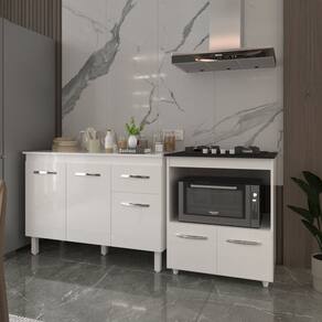 Altura: 85,5 cm (com pés e tampo) | 80,5 cm (sem pés) Largura: 75 cm (com tampo) | 71 cm (sem tampo) Profundidade: 50 cm Nicho para Cooktop: 53 x 36 cm Material: MDP Portas: 2 Puxadores: 2 plásticos cromados Pés: 4 plásticos (sem regulagem) Tampo incluído: Sim