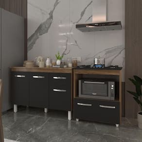 Balcão Armário Gabinete Aline 118 Cm Savana Preto Com Tampo Savana E Balcão Evelyn Para Cooktop 5 Bocas Savana Preto Este kit une funcionalidade e design para transformar sua cozinha! Conta com o balcão Aline de 120 cm com tampo, perfeito para organizar utensílios e preparar refeições, além do balcão Evelyn para cooktop de 5 bocas, garantindo uma instalação segura e harmoniosa. Com acabamento refinado, materiais de alta qualidade e um visual moderno, esse conjunto é a escolha ideal para quem busca praticidade sem abrir mão do estilo. Características do Balcão Aline: