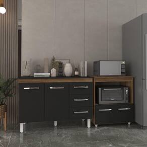 Balcão Armário Gabinete Bruna 118 Cm Savana Preto Com Tampo Preto E Balcão Amanda Para Forno E Microondas Savana Preto Transforme sua cozinha com este kit prático e elegante! Composto pelo balcão Bruna de 120 cm com tampo, ideal para armazenamento e apoio no preparo de refeições, e pelo balcão Amanda para Forno e Micro-ondas, que proporciona uma instalação segura e organizada. Seu design moderno, materiais resistentes e acabamento sofisticado garantem funcionalidade e beleza para um ambiente mais aconchegante e eficiente. Características do Balcão de Pia Bruna 118 cm: