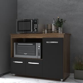 Balcão Armário Gabinete De Cozinha Para Microondas E Forno Elétrico 3 Portas Lilian Mobília Decor Savana Preto O Balcão Multiuso para Cozinha Micro-ondas e Forno Lilian da Mobília Decor é a solução perfeita para quem busca um móvel versátil, funcional e com design elegante. Desenvolvido para oferecer praticidade e organização, ele conta com uma porta lateral ideal para utensílios maiores e duas portas inferiores que proporcionam fácil acesso aos itens menores. Seja para otimizar o espaço ou complementar a decoração da sua cozinha, o Balcão Lilian é a escolha certa. Garanta já o seu! Dimensões: Altura: 85 cm (com pés) Altura sem os pés: 80 cm Largura: 114 cm Profundidade: 50 cm Encaixe do forno: 38,5 x 68 cm
