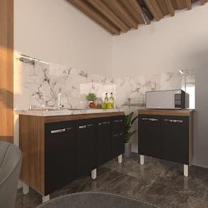 Transforme sua cozinha com o elegante Kit Balcão para Pia de 140 cm Camila e Balcão Multiuso para Micro-ondas e Forno Elétrico Jane. Com um design moderno e funcional, este conjunto é desenvolvido com materiais de alta qualidade, pintura UV e acabamento impecável, proporcionando beleza e praticidade ao seu espaço. Não perca a oportunidade de adquirir o seu!