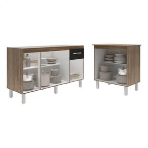 Características do Kit Montado: Largura: 208 cm (lado a lado os dois balcões) Profundidade: 53 cm (profundidade do balcão para cooktop com tampo; sem tampo, os balcões possuem 50 cm de profundidade) Altura: 85 cm (altura do balcão para cooktop com tampo; sem tampo, os balcões possuem 83,5 cm de altura) Os móveis são independentes e podem ser montados e utilizados em diferentes locais.