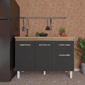 Cansado de ter que vasculhar armários para encontrar o que precisa? Chega de utensílios espalhados por toda parte! Com o nosso Balcão para Pia 120cm com 3 Portas e 1 Gaveta, você finalmente terá a cozinha dos seus sonhos: organizada, moderna e funcional.