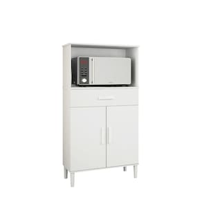 Com 0,61m de largura, 1,26m de altura e 0,40m de profundidade, este balcão para microondas e forno oferece espaço generoso para acomodar e armazenar o seu microondas, forno, forno elétrico e objetos variados. Com duas prateleiras, duas portas e uma gaveta, proporciona espaço para acomodar 2 fornos e ainda, armazenar utensílios de cozinha, panelas, potes e outros itens essenciais. As portas e gavetas são equipadas com puxadores que não só facilitam o acesso, mas também acrescentam um toque de elegância ao design.
