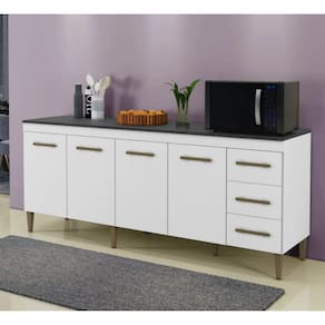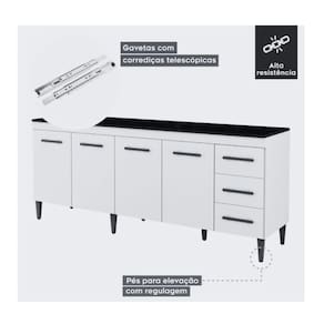 O Balcão Atenas é simplesmente incrível! Com suas 4 portas e 3 gavetas, é como se fosse a solução perfeita para todos os nossos problemas de espaço na cozinha. E a largura de 201cm? É tipo um convite para colocar todas as nossas coisas lá dentro sem nem pensar duas vezes! As portas são super fáceis de abrir, então não precisa ficar brigando com elas. E com as três gavetas extras, dá para guardar desde os talheres até aqueles potes pequenos que sempre ficam perdidos. Ah, e o visual dele? Chique e moderno, vai dar um "up" na nossa cozinha!