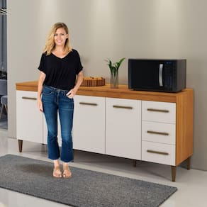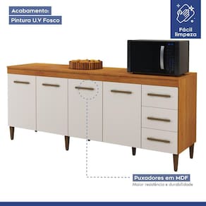Preparar aquela receita especial vai ficar muito mais prático com a presença do Balcão Atenas. Além de oferecer nichos de tamanho ideal para acomodar panelas, produtos de mercearia e até eletrodomésticos, ele também conta com gavetas para guardar talheres, panos de prato e utensílios indispensáveis na hora de cozinhar - o tampo também é uma ajuda e tanto para picar alimentos ou apoiar itens de decoração! Por fora, a estrutura básica e cor leve são ótimas para ajudar a compor o espaço gourmet dos sonhos já que harmonizam bem com outras tonalidades e acessórios que usar para criar um cantinho com a sua personalidade. Daí é só combiná-lo com armários aéreos ou paneleiros e aproveitar as vantagens de ter tudo fácil de alcançar e bem organizado.