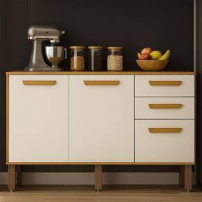 Balcão Athenas 110cm Com 3 Portas 2 Gavetas Mobilihouse Cinamomo/off White Acetinado O Balcao Athenas 110cm e perfeito para guardar utensilios, loucas e mantimentos, alem de trazer um toque moderno e elegante ao ambiente. Um movel que une design, resistencia e funcionalidade para deixar sua cozinha muito mais pratica e bonita!