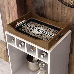 O Balcão Adega Bar Pub conta com design moderno e sofisticado para complementar sua decoração. Com pés e bandeja removível em madeira maciça adesivo interno na bandeja e adega, ele proporciona um espaço ideal para acomodar até 4 garrafas, unindo beleza e funcionalidade de forma impecá estrutura em MDP com acabamento de alta qualidade garante maior durabilidade e resistência, tornando este balcão uma peça resistente e de longa vida útil. Ideal para valorizar o seu ambiente, esse móvel traz um toque de elegância ao seu espaço.