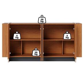 Balcão Buffet Copacabana, design elegante e sofisticado para transformar sua sala de jantar. Estrutura em MDP (15 mm) e acabamento em pintura UV texturizada. Possui 4 portas, tubos metálicos decorativos (dourado) e prateleiras internas reforçadas para louças pesadas. Este produto será entregue em 2 volumes.