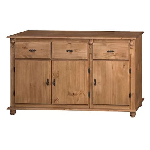 O Balcão Buffet 3 Portas e 3 Gavetas Sevilha Pés Torneados em Madeira pode ser o complemento perfeito para sua sala de jantar, pois além de proporcionar mais elegância ao seu ambiente, ele também pode te ajudar na organização de seus objetos. Com um design super detalhado e encantador, este balcão de madeira foi produzido para quem gosta de beleza mas também preza por qualidade. Com estrutura produzida inteiramente em madeira maciça, este balcão buffet com gavetas foi elaborado para ter alta resistência e qualidade, possibilitando que você desfrute dessa mobília por muito tempo. Seu interior conta com um amplo espaço, além de 1 prateleira que auxilia na hora de arrumar e separar seus pertences, para deixar tudo do jeitinho que você quiser, juntamente com suas 3 gavetas com corrediças telescópicas que o torna ainda mais funcional.