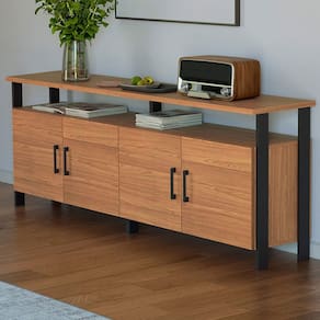 O(a) Balcão Buffet 4 Portas 100% Mdf Industrial F45 Freijó/Preto Fosco - Pradel é produzido em 100% MDF na escala de brilho Brilho e Fosco, e possui um grau de dificuldade de montagem: Médio.