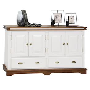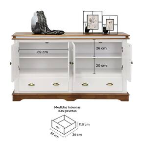 O tampo em madeira maciça apresenta um acabamento duplo, conferindo não apenas durabilidade, mas também um charme adicional ao produto. Perfeito para a sala de jantar, cozinha ou espaço gourmet, este Balcão Buffet de Madeira é a escolha ideal para quem busca qualidade, elegância e praticidade em um único móvel.