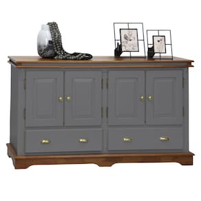 O tampo em madeira maciça apresenta um acabamento duplo, conferindo não apenas durabilidade, mas também um charme adicional ao produto. Perfeito para a sala de jantar, cozinha ou espaço gourmet, este Balcão Buffet de Madeira é a escolha ideal para quem busca qualidade, elegância e praticidade em um único móvel.