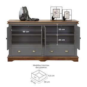 Balcão Buffet 4 Portas 2 Gavetas Manchester 2042 Linz Móveis - Cinza/Imbuia Glazer