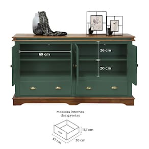 O tampo em madeira maciça apresenta um acabamento duplo, conferindo não apenas durabilidade, mas também um charme adicional ao produto. Perfeito para a sala de jantar, cozinha ou espaço gourmet, este Balcão Buffet de Madeira é a escolha ideal para quem busca qualidade, elegância e praticidade em um único móvel.