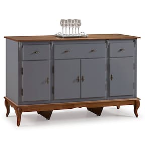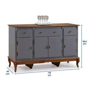 Balcão Buffet 4 Portas e 3 Gavetas com Pés Luiz XV 60635 Linz Móveis - Cinza/Imbuia Glazer