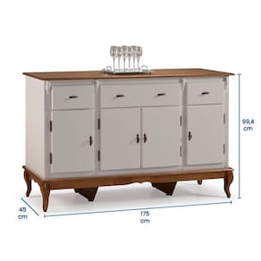 Está em busca de um móvel elegante e funcional para sua casa? O Balcão Buffet para Sala de Jantar 60635 Linz Móveis certamente deixará sua casa ainda mais bonita e organizada, pois ele combina praticidade e estilo para possibilitar o melhor aproveitamento de espaço possível. Conta com quatro portas com interiores espaçosos, três prateleiras internas para divisão dos utensílios armazenados, possui também três gavetas para guardar objetos menores, como talheres, em segurança. Além disso, o balcão de madeira exibe seus pés no estilo Luís XV que proporcionam um toque de nobreza e requinte na decoração da casa, trabalhando assim os dois aspectos necessários para um móvel, amplo espaço de armazenamento e também uma bela decoração harmoniosa ao local. Produzida em Madeira Maciça para tons amadeirado em verniz e MDF nos tons coloridos com acabamento laca, materiais de alta resistência e qualidade, possibilitam que você desfrute dessa mobília por muito tempo.