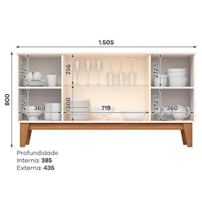 Modelo: Balcão Buffet 4P Ripado e Vidro 150 cm Eiffel Henn
