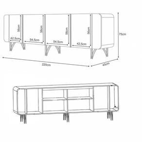 Dimensões: Altura: 75 cm Largura: 220 cm Profundidade: 45 cm Peso: 57,84 kg