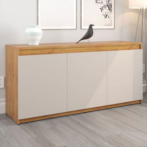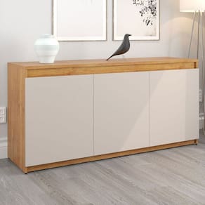 O(a) Balcão Buffet Alvin 3 Portas 1 Prateleira Marrom/Off White - Viero Móveis é produzido em MDP na escala de brilho Semi-Brilho, e possui um grau de dificuldade de montagem: Médio.