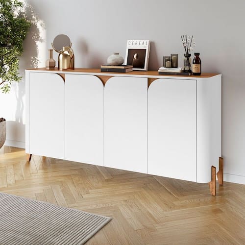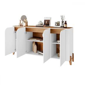 O(a) Balcão Buffet Anápolis 4 Portas Branco/Cedro - Pnr Móveis é produzido em MDF e MDP na escala de brilho Semi-Fosco, e possui um grau de dificuldade de montagem: Médio.