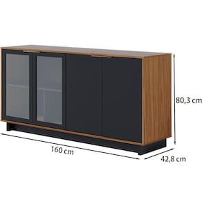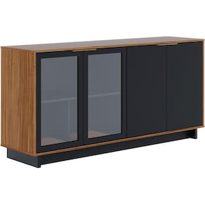 Balcão Buffet Aparador 160 cm 4 Portas V1524, é um móvel cheio de personalidade e indicado para deixar sua sala de jantar ou estar, ainda mais charmosa. Estrutura em MDP e MDF de 15 e 25 mm, que proporcionam melhor acabamento nas bordas e superfícies, contando com pintura em acabamento UV (Fosco). Composto portas articuladas com dobradiças metálicas, sendo duas em vidro, e duas em MDF, divisórias internas, puxadores metálicos dourados, e acompanham sapatas plásticas. É ideal para armazenar aparelhos de jantar, travessas e copos. Seu tampo também pode ser utilizado como apoio para objetos decorativos, bebidas ou até mesmo como bancada para acomodar utensílios para servir drinques e petiscos. Este móvel chegará na sua casa separado em 02 volumes.