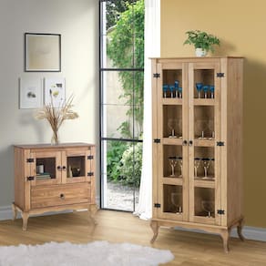 Complemente sua decoração com esse Balcão de Madeira, um móvel que combina qualidade, beleza e praticidade. Produzido 100% em madeira maciça e com acabamento em cera, o Balcão Buffet traz o charme atemporal do estilo clássico. Com 2 portas com vidro e 1 gaveta, ele é perfeito para organizar e armazenar utensílios, objetos ou itens decorativos. Seus pés Luiz XV e dobradiças em metal no estilo mexicano garantem um visual único e sofisticado, fazendo deste balcão uma peça indispensável para ambientes como sala de jantar, cozinha ou área gourmet.