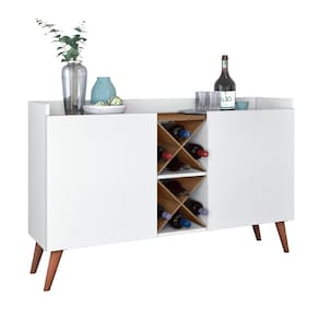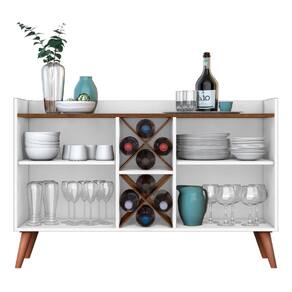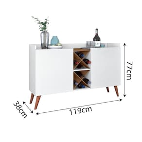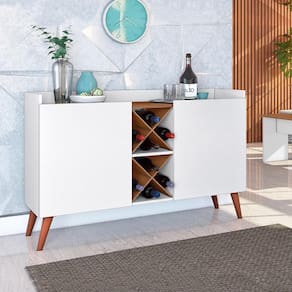 O aparador Buffet Max é versátil, charmoso e delicado, perfeito para expor seus objetos de decoração com elegância e sofisticação, perfeito para compor ambientes como Hall de Entrada, Sala de Jantar, Sala de Estar. Contém tampo superior com formato estilo bandeja, portas nas extremidades, prateiras com excelente espaço interno e adega para 8 garrafas estilo "X" na parte central. Os pés estilo retro completam o visual incrível deste móvel.