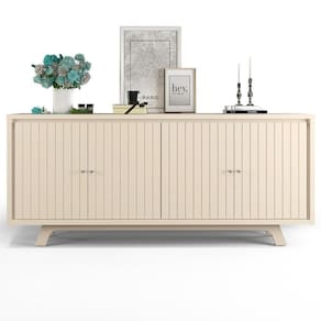 Seguindo a última tendência de decoração, o Balcão Buffet para Sala de Jantar Mercuri traz uma proposta de modernidade e sofisticação para a sua casa, graças às 4 portas com frisos e aos pés em MDF 25mm que possuem um design diferente, além da resistência. Ah, já o compartimento interno com 2 prateleiras vai manter todos os objetos e utilidades domésticas sempre organizados, com muito praticidade e funcionalidade. A sua sala de jantar e os seus convidados merecem!