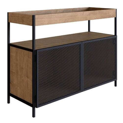 Balcão Buffet Bar Industrial York Artesano 100 Cm (largura) Em Mdp Vermont Duas Portas Aço Preto