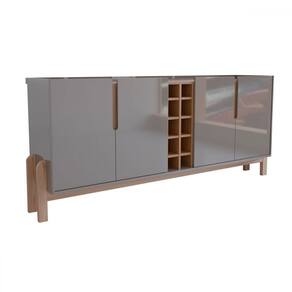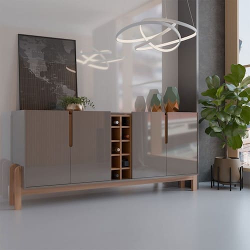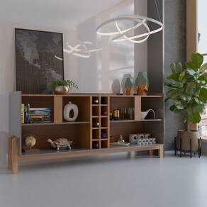 O(a) Balcão Buffet Canela 4 Portas com Adega Cinza Perola/Cedro - Loja é produzido em MDP/MDF na escala de brilho Semi-Brilho, e possui um grau de dificuldade de montagem: Médio.