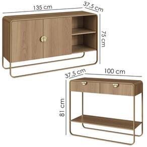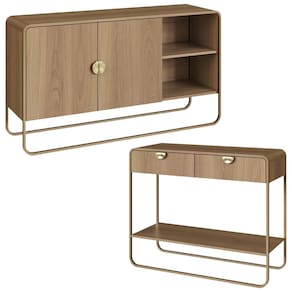 Conjunto de Buffet e Aparador que combinam design orgânico e contemporâneo com a praticidade para o dia a dia. Estrutura em MDP 15mm (cantoneiras em MDF) e acabamento em pintura BP. Conta com 2 portas com dobradiças metálicas e com 2 gavetas com corrediças telescópicas, prateleiras internas e externas, puxadores em poliestireno (plástico), pés em metal, além de sapatas plásticas que protegem o piso contra riscos. Produto será entregue em 02 volumes.