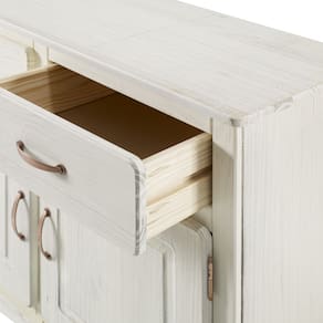 - Acabamento: Cera na cor branco envelhecido com veios e nós aparentes.