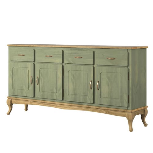 A linha Olive é inspirada nos vilarejos cercados por oliveiras e parreiras, nas casas de campo, no azeite de oliva, na culinária e na mesa farta. São móveis produzidos artesanalmente a partir de madeira maciça de reflorestamento, com pés trabalhados no estilo Luis XV, dobradiças e puxadores em metal na cor cobre. Assim como as olivas, esta linha está disponível nas cores verde e preta, com tampos na cor marrom antique.