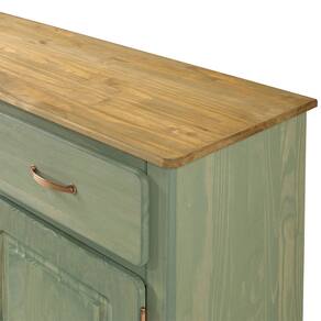 - Acabamento: Cera na cor verde oliva com veios e nós aparentes.