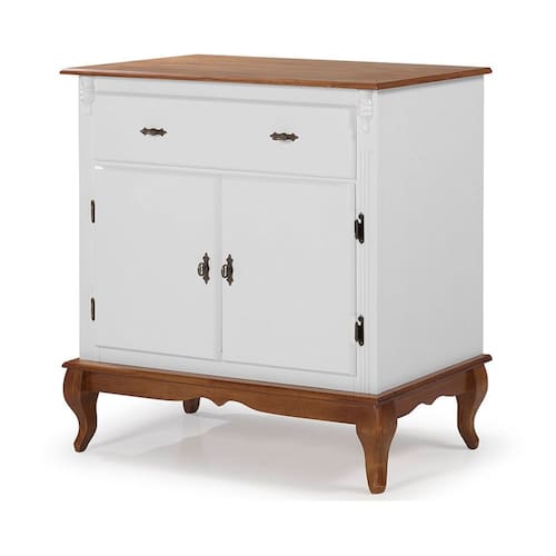 Balcão Buffet Florença 2 Portas 1 Gaveta Pés Luiz XV - Laca Nude/ Imbuia