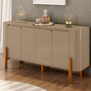 O(a) Balcão Buffet Imbassaí 4 Portas 2 Prateleiras Marrom Claro - Móveis Bechara é produzido em MDP na escala de brilho Brilhante e Fosco, e possui um grau de dificuldade de montagem: Médio.