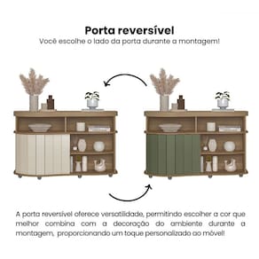 O(a) Balcão Buffet Buffet Magnum 1 Porta Flex Carvalho/Off White/Menta - Artely é produzido em MDF, MDP e Tamburato na escala de brilho Fosca com Textura, e possui um grau de dificuldade de montagem: Médio.