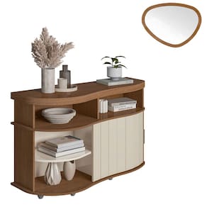 O(a) Balcão Buffet Magum 1 Porta com Espelho Orgânico Cinamomo/Off White - Pnr Móveis é produzido em MDF, MDP e Tamburato na escala de brilho Fosca com Textura, e possui um grau de dificuldade de montagem: Médio.