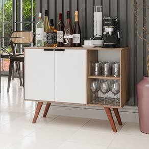 Características: Estrutura em MDP 15mm; Acabamento em melamina BP; Possui 2 portas com dobradiças metálicas; Possui 2 nichos; Puxadores em alumínio; Possui 4 pés retrô; Amplo espaço interno;