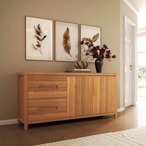 Balcão Buffet Nature com 2 Portas e 4 Gavetas Rústico Claro Madeira Pinus