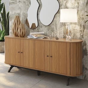 Um toque dinâmico e inovador para sala de jantar. Conheça agora mesmo os detalhes do móvel que pode transformar esse ambiente!Com a qualidade, durabilidade e resistência que só os móveis 100% MDF podem oferecer, a Mpozenato apresenta o Balcão Buffet Miles!! Ele é uma ótima alternativa para conferir requinte e funcionalidade ao cômodo onde esses requisitos são essenciais. Conta com 4 portas de puxadores metálicos e amplo espaço interno com 2 prateleiras para guardar louças, toalha de mesa e itens diversos. Ah, o design com as extremidades arredondadas, detalhes ripados e os pés curvos fazem dele um balcão buffet retrô! Inclusive, as portas também possuem dobradiças com amortecedor, facilitando o uso diário!Depois de conhecer um pouco mais sobre esse móvel, fica difícil recusar né? Aproveite e leve já o seu buffet!!EspecificaçõesDimensões do ProdutoLargura: 180 cm.Altura: 78 cm.Profundidade: 40 cm.Peso: 52 Kg.Características do ProdutoMaterial da Estrutura: MDF.Acabamento: Pintura UV.Escala de Brilho: Fosco.Peso Suportado: 10Kg na base/20 Kg no tampo.Possui Portas: Sim.Material da Porta: MDF 18mm.Quantidade de Portas: 4 Portas.Tipo de Porta: Convencional.Tipo de dobradiças: Metálicas.Possui Prateleiras: Sim.Material da Prateleira: MDF 15mm.Quantidade de Prateleiras: 2 Prateleiras.Possui Gavetas: Não.Possui Nichos: Não.Possui Puxador: Sim, metálico.Possui Pés: Sim.Tipo de Pés: MDF.Diferenciais:- Design moderno.- Amplo espaço interno.- Pés em MDF.Sistema de Montagem: Minifix / Cavilhas / Parafusos.Manual de Montagem: Sim.Complexidade da Montagem: Média.Volumes: 2 Volumes.Conteúdo da Embalagem: 1 Buffet.Garantia do Fabricante: 90 dias contra defeitos de fabricação.Montagem: Recomendamos que seja feita por um profissional.Recomendação de Limpeza: Utilize pano levemente úmido.Observações importantes:- Produto para uso residencial em ambiente interno, não devendo ficar exposto diretamente ao sol, calor e umidades excessivas.- Pode haver alguma diferença de tonalidade entre a imagem e o produto real, por conta do tratamento de imagens e a calibração de cores do seu monitor.- As imagens são meramente ilustrativas, não acompanham objetos de decoração e eletrônicos.- Confira o estado da embalagem, não devendo assinar o comprovante em caso de danos.- Não asseguramos, no ato da entrega, por subir escadas/elevadores, pelo transporte por guincho em apartamentos ou montagem, desmontagem e instalações. Eventuais despesas são por conta do comprador.- Confira as dimensões do produto e certifique-se de que passará normalmente por supostos elevadores, portas, escadas e/ou corredores de sua residência.