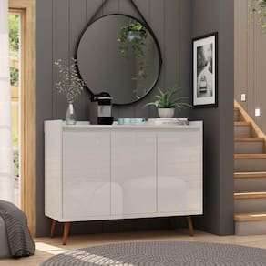 Ideal para organizar melhor sua sala de jantar ou de estar, o Buffet Aparador Retrô Delux 3 Portas - MoveisAqui trouxe de volta a pegada retrô que veio para ficar. Os pés estilo palito, levemente angulados, se destacam pelo charme que garante à peça. Seus compartimentos internos são ideais para armazenar e organizar diversos tipos de objetos pessoais, além de seu aparelho de jantar e demais itens que sejam necessários. Lindo, robusto e versátil, garante um espaço moderno e organizado.