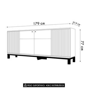 Composto por quatro portas convencionais com dobradiças metálicas, conta com duas portas laterais que apresentam uma textura microripada exclusiva e fecho toque. Nas portas centrais o puxador ponto em ABS adiciona um toque minimalista e elegante, completando o design do Buffet Aparador com perfeição.