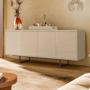 Balcão Buffet Serra do Mar 4 Portas 3 Prateleiras com Bandeja Off White - Artely Móveis
