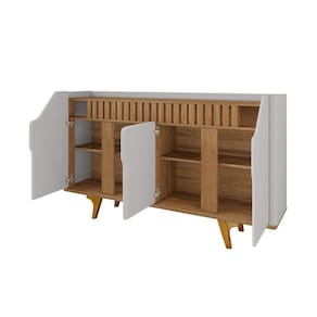 O(a) Balcão Buffet Tamisa 4 Portas Ripado Off White/Cinamomo - Móveis Bechara é produzido em MDF na escala de brilho Brilhante e Fosco, e possui um grau de dificuldade de montagem: Médio.
