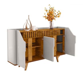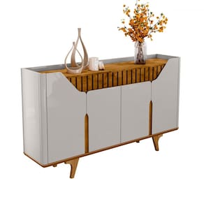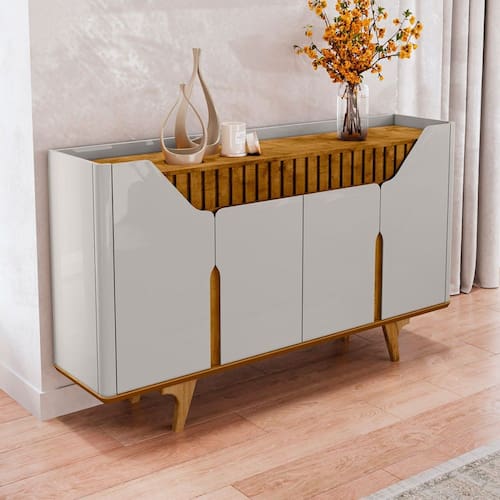 O(a) Balcão Buffet Tamisa 4 Portas Ripado Off-White/Naturalle - Móveis Bechara é produzido em MDF na escala de brilho Brilhante e Fosco, e possui um grau de dificuldade de montagem: Médio.