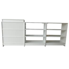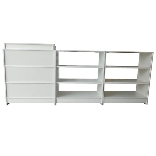 Detalhe Técnico: Lindo kit de Balcão composto por: 2 Balcões Expositor (já acompanha Vidro) + 1 Balcão Caixa Material de estrutura 100% MDF Medida padrão de cada módulo ( 3 Módulos) 1,00 altura 0,87 largura 0,38 profundidade Largura total do móvel 2,61