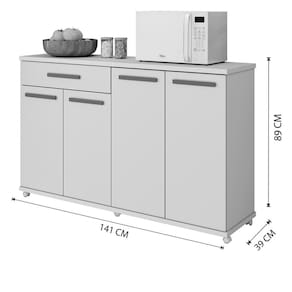 Amplo espaço interno o Balcão Campinas foi projetado para deixar sua cozinha do seu jeito. Gaveta com corrediça telescópica, 4 portas com prateleiras internas e rodízios ele será a opção perfeita na sua cozinha.